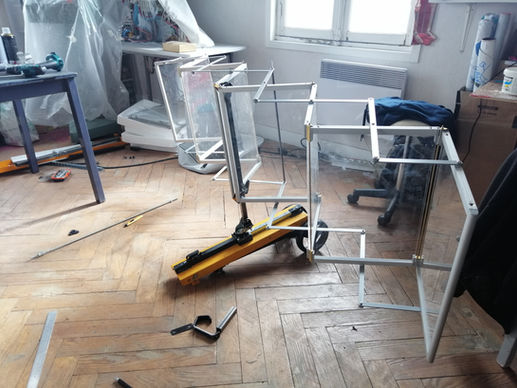 La maquette était nécessaire pour détailler les étapes de montage/ démontage, la structure finale est ainsi dotée de verrous et de loquets pour assurer chaque étape.